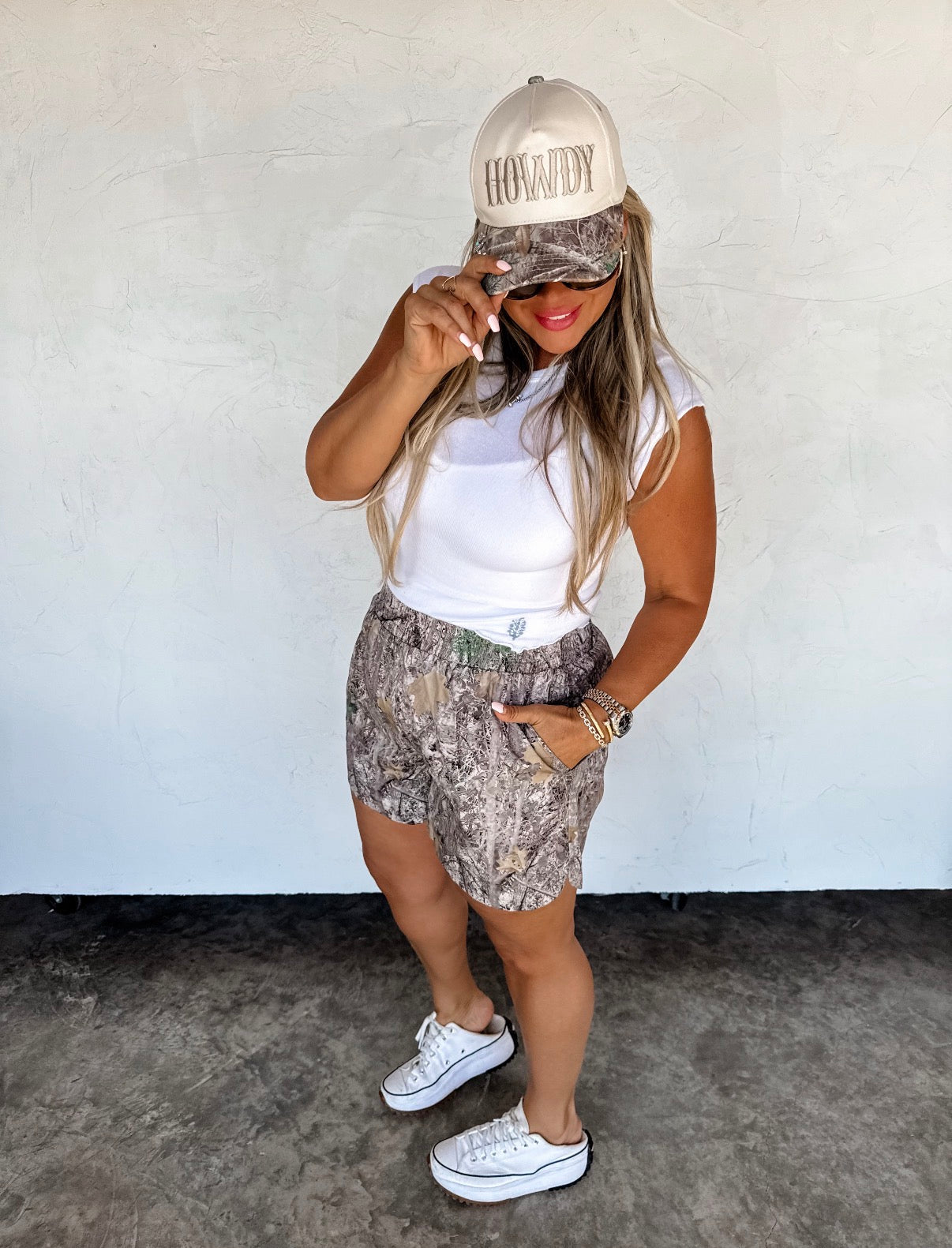 Our new woodsy camo print shorts are the perfect mix of trendy and cozy! Featuring a classic woods pattern print, these shorts feature a lightweight cotton fabric, elastic waistband and convenient side pockets. Loose leg look, Non stretchy.