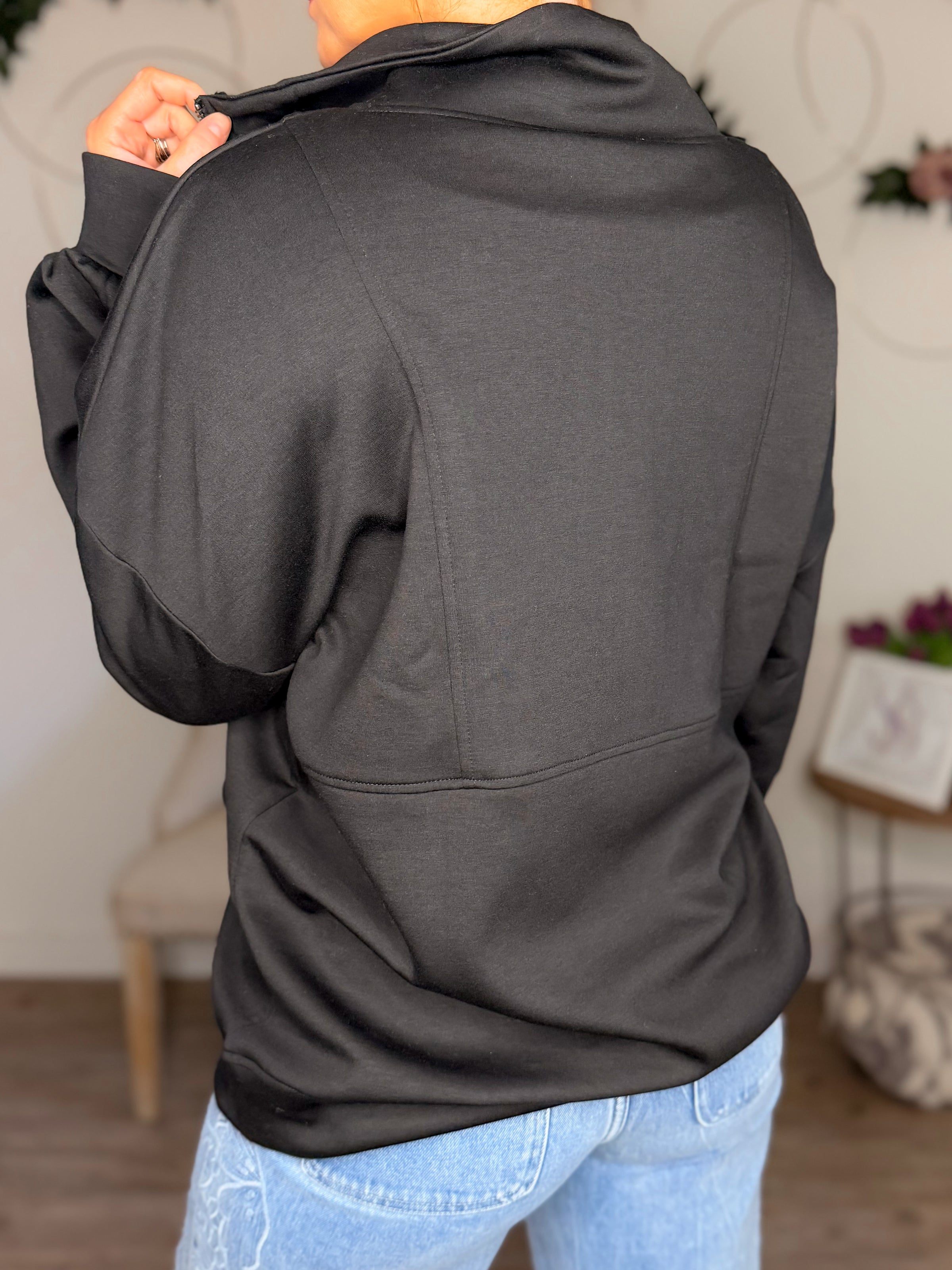 The Scuba Half Zip Kangaroo Pullover features an oversized fit and a half zip closure for adjustable ventilation. Constructed from a highly elastic scuba fabric, it provides comfort and excellent drape. Additionally, front pockets offer practical storage, making it suitable for various activities and environments.