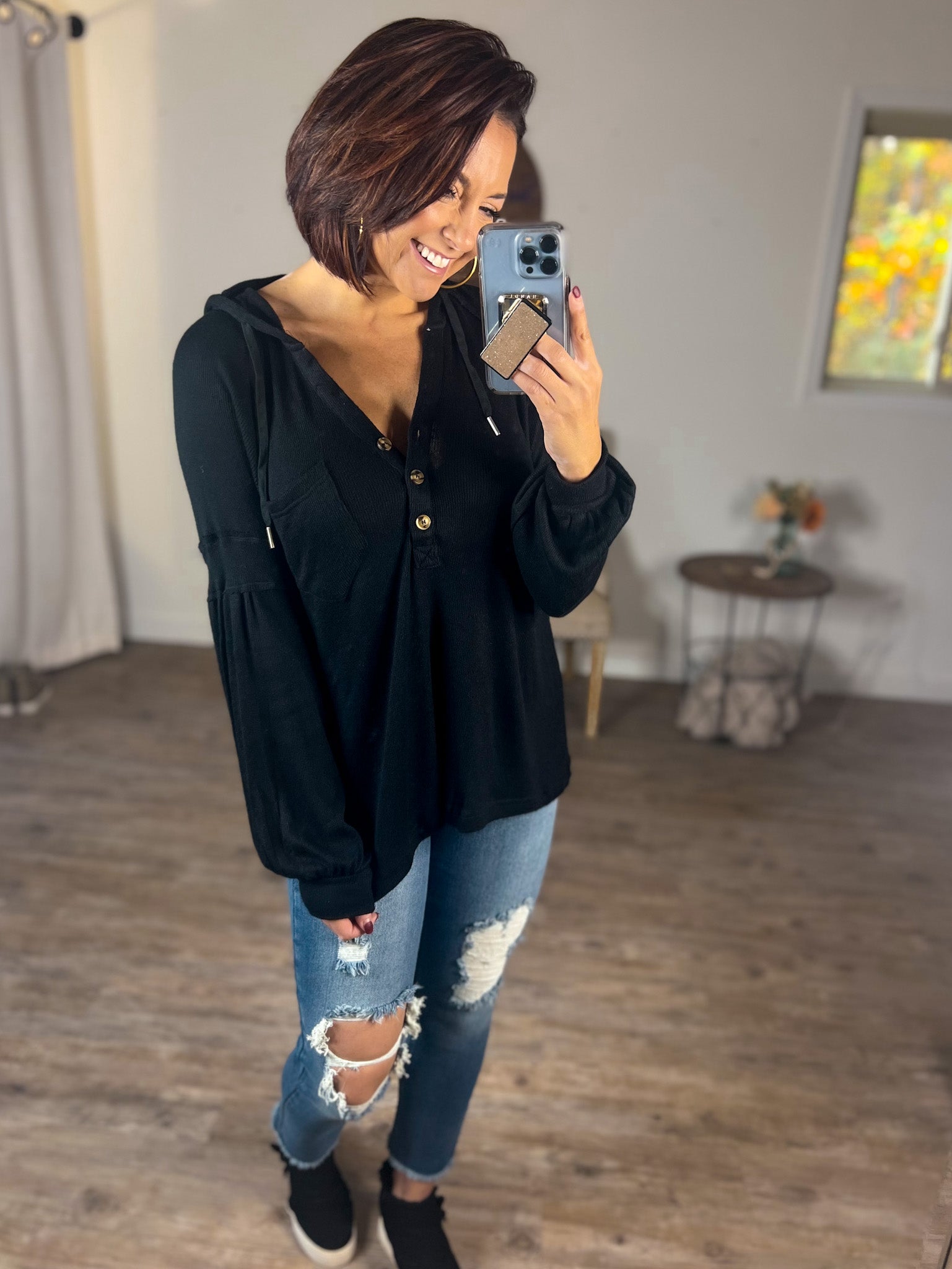 Hacci Henley Knitted Hoodie